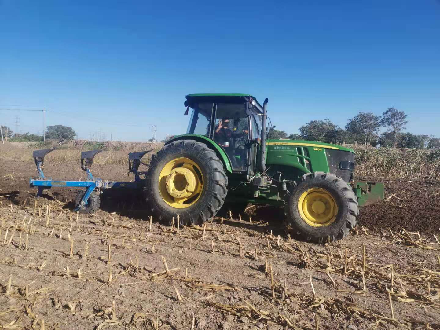 选用140马力拖拉机,配备深松(翻)犁,作业深度30-40厘米。