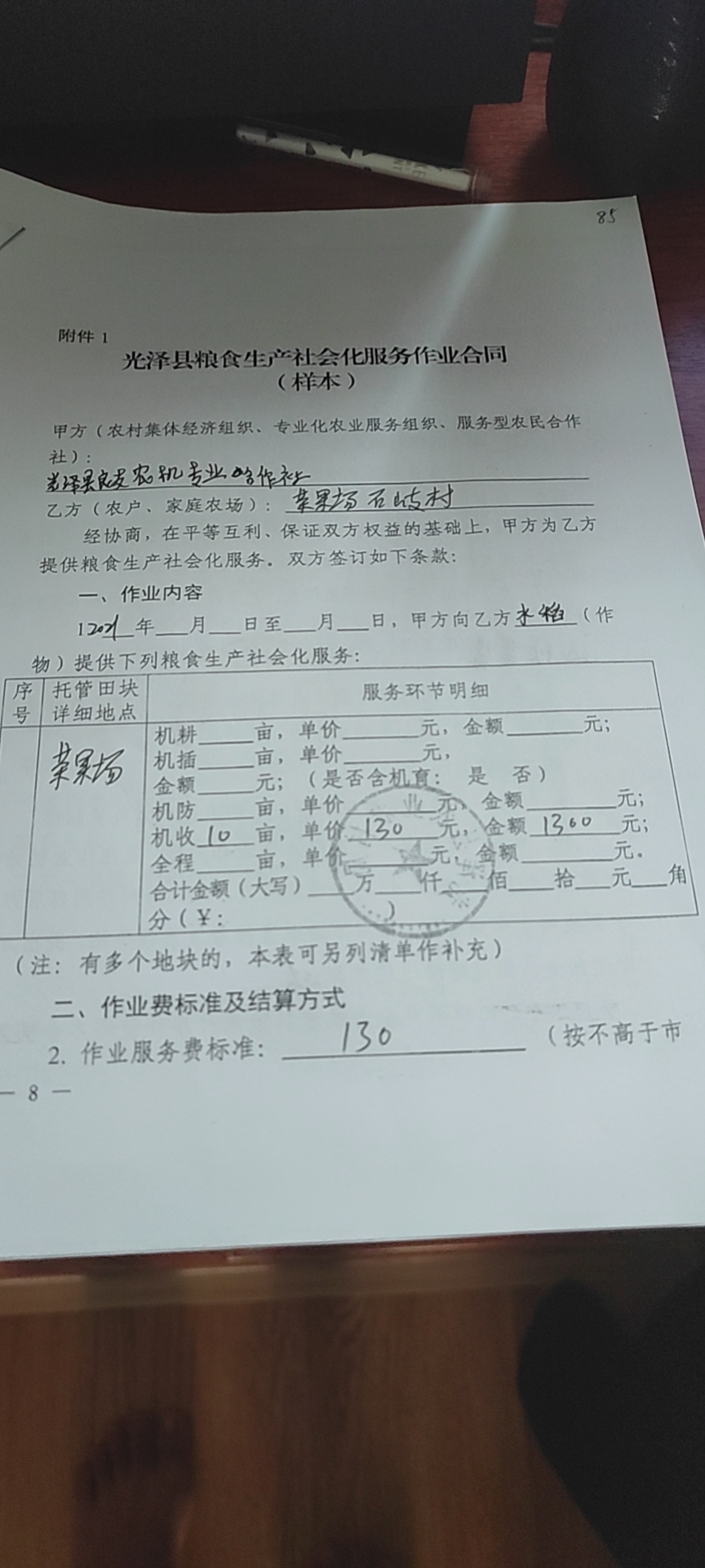 服务价格130.00元/亩