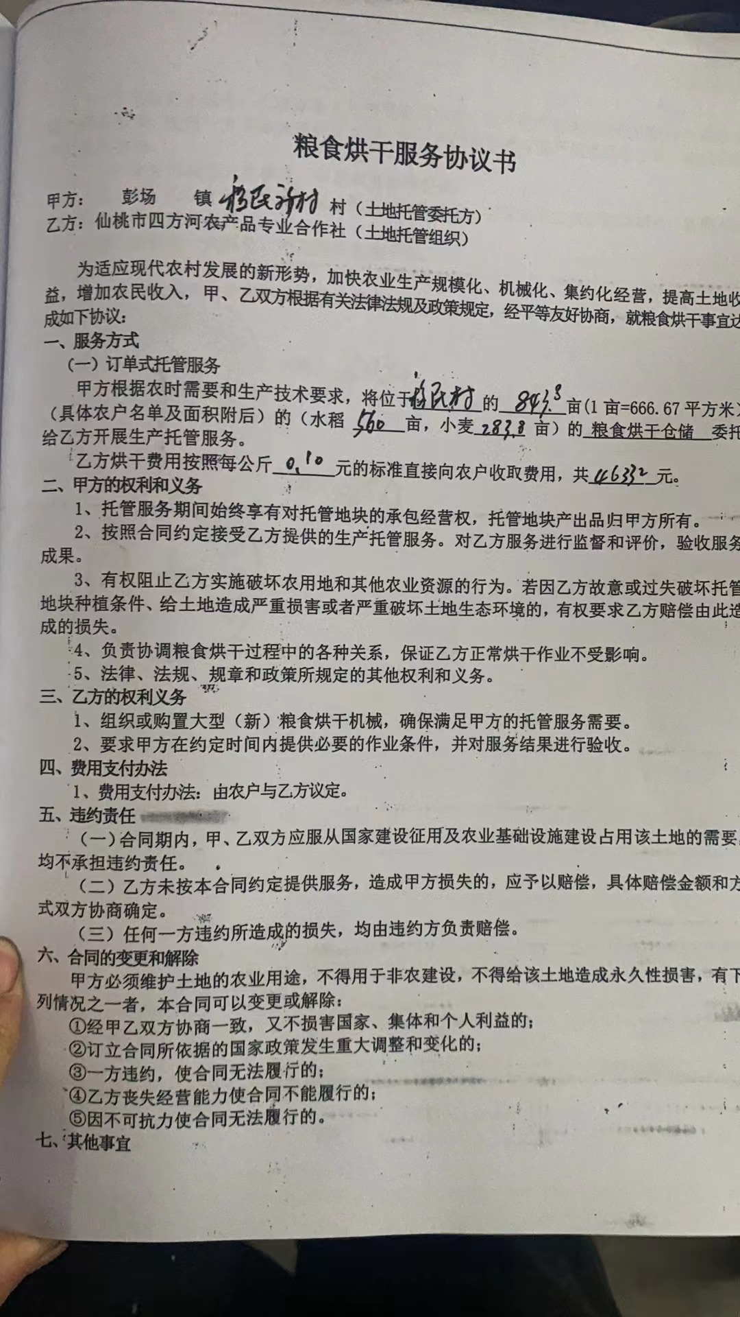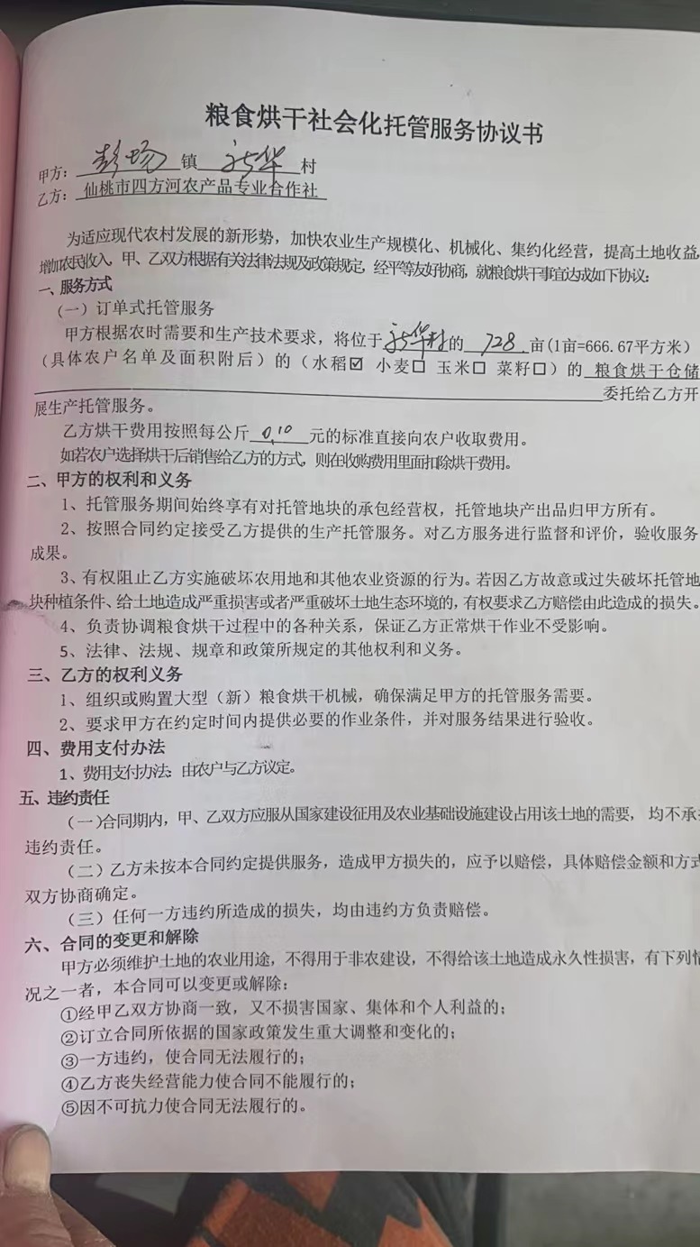 服务主体 仙桃市四方河农产品专业合作社