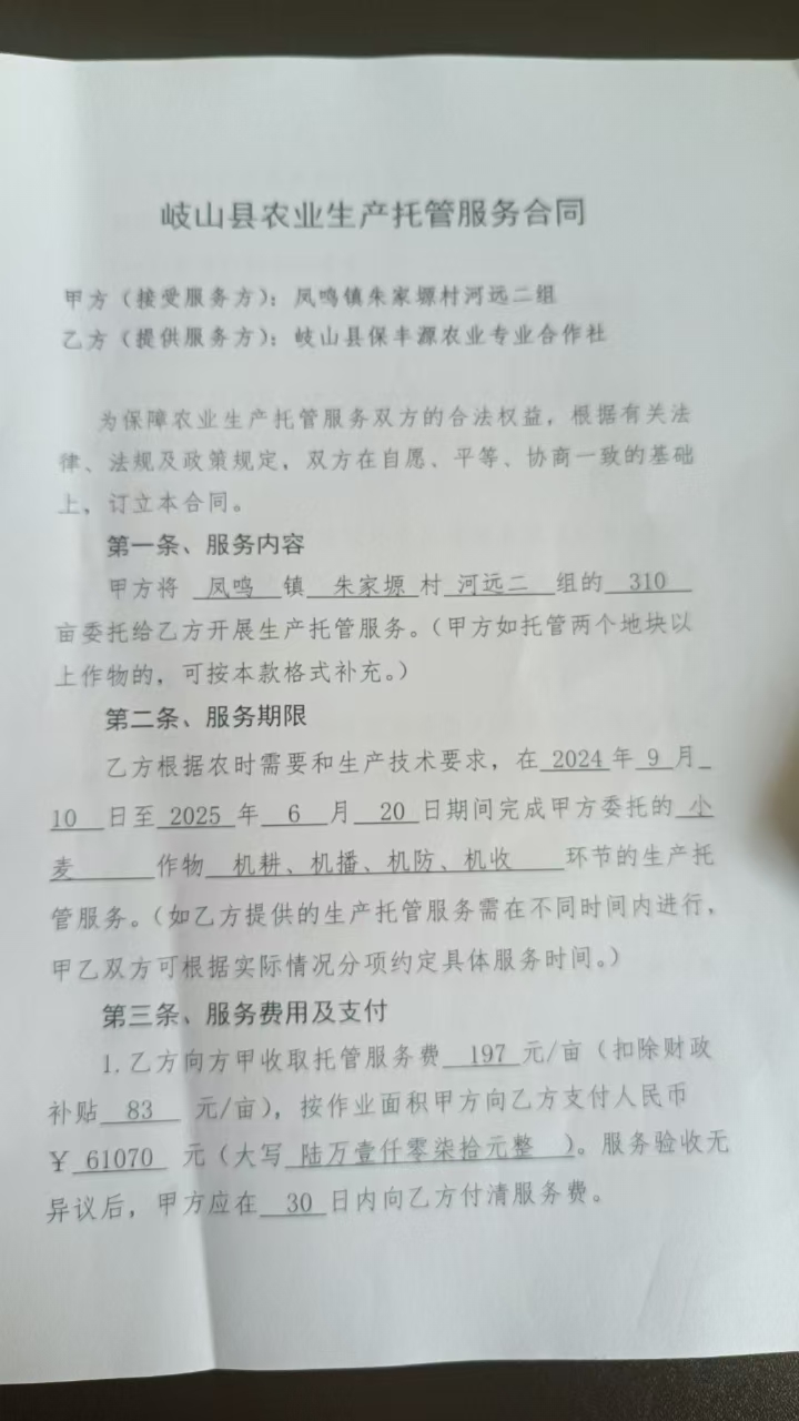 病虫害防治作业服务(防治病虫害85%以上为标准)