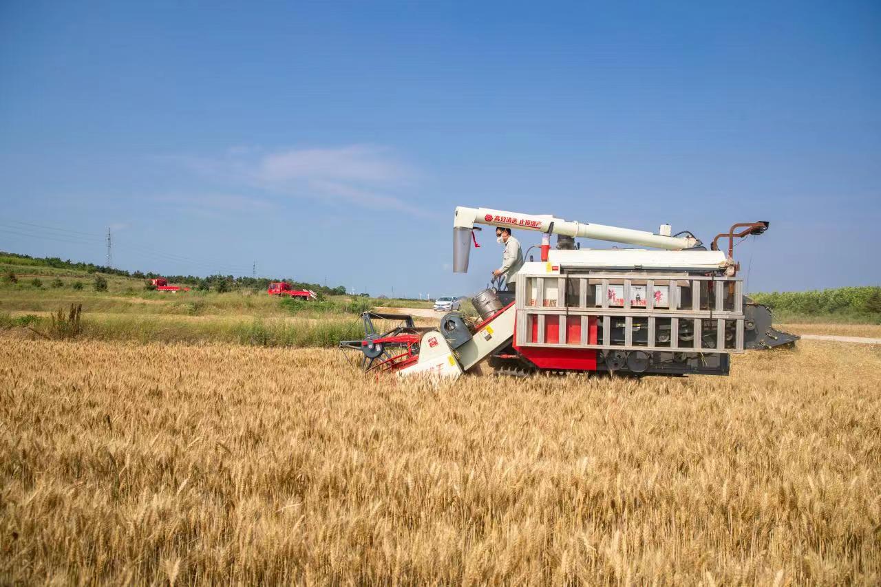 小麦收获。用联合收割机在蜡熟末期至完熟初期收获,麦秸还田。小麦收获时采用带秸秆切碎和抛撒功能的联合收割机,收获同时秸秆切碎还田,小麦秸秆切碎长度≤10厘米,切断长度合格率≥95%,抛洒不均匀率≤20%,漏切率≤1.5%。小麦收获时低留茬,根茬高出地面不超过20厘米。